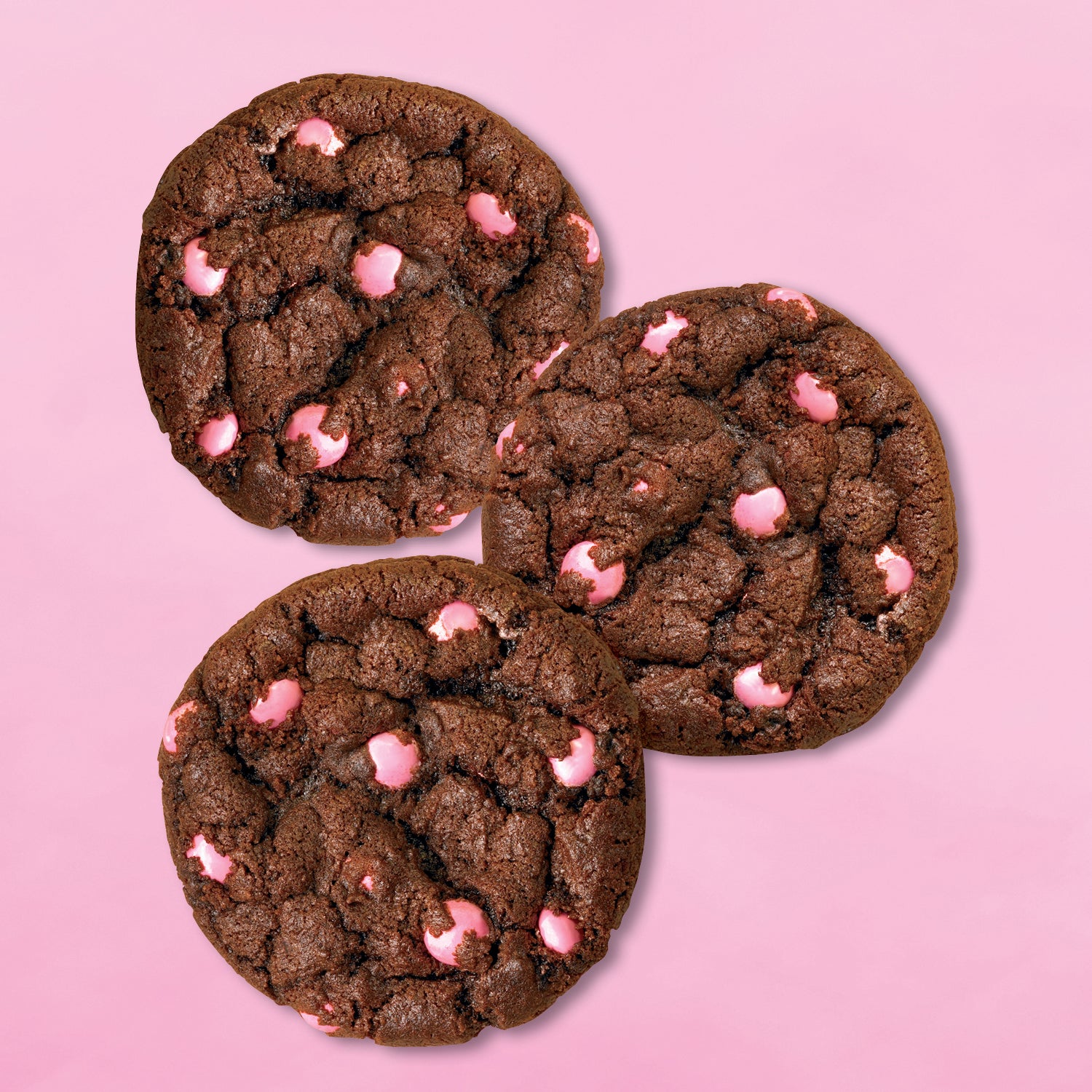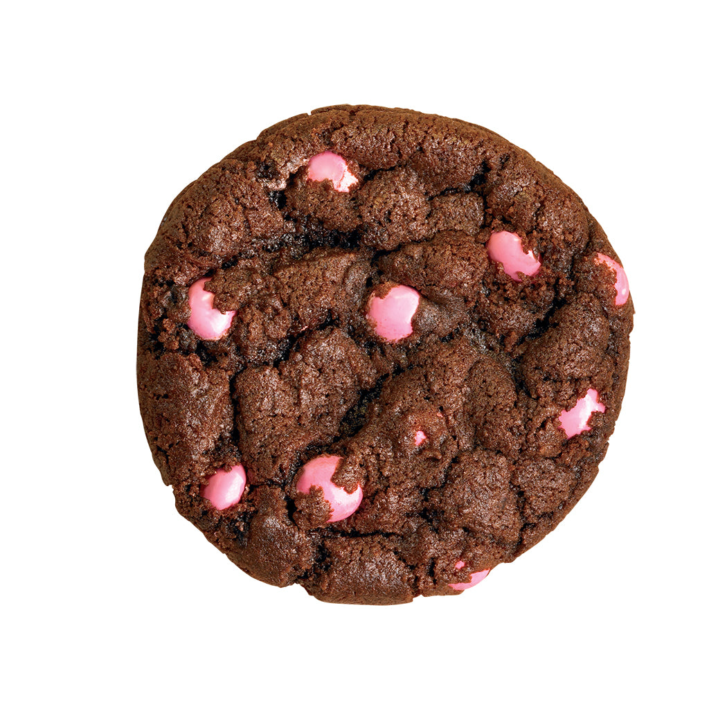 DARK CHOCOLATE COOKIE WITH PINK MILK CHOCOLATE CANDY GEMS